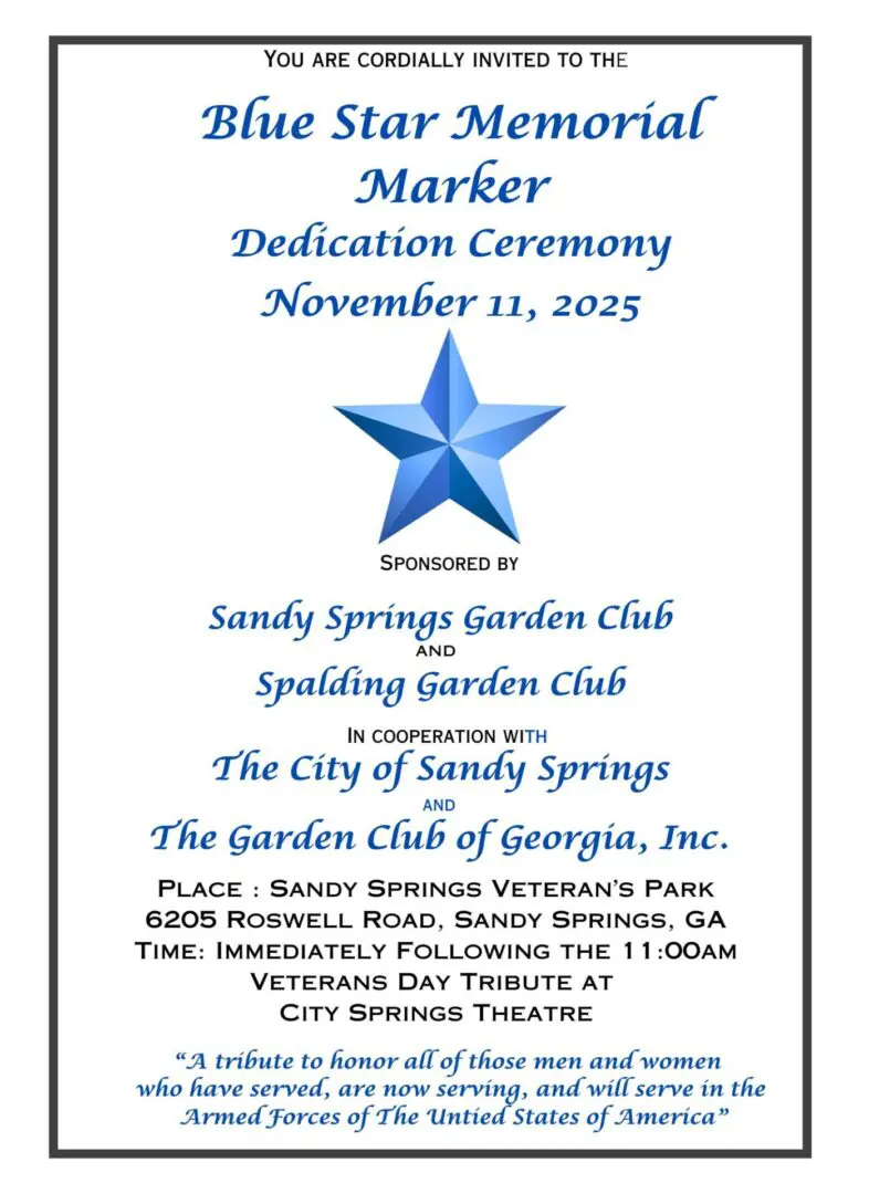 You are cordially invited to the Blue Star Memorial Marker Dedication Ceremony on November 11, 2025.